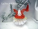 Fée des Alpes, fée 2 en 1, fée de dentelle de décoration transformable en marque-page, décoration de Noël, décoration de sapin,fée des Alpes, dentelle, tutu, jupon paillettes, jupon corolle, fée de Noël pour Sapin, fée marque-page, BLANC ET ROUGE,broderie et tutu entièrement réalisés dans les Alpes par AMD à Coudre. FEE6Product by AMD A COUDRE More about this product